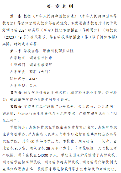 更多详情:湖南科技职业学院2024年高职单招章程招生章程